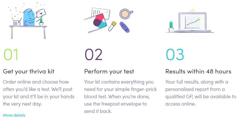 Thriva is a blood health test that you do yourself at home, post back, and get the results. Itβs a subscription you get every three months (but you can do as a one-off if you cancel the subscription).